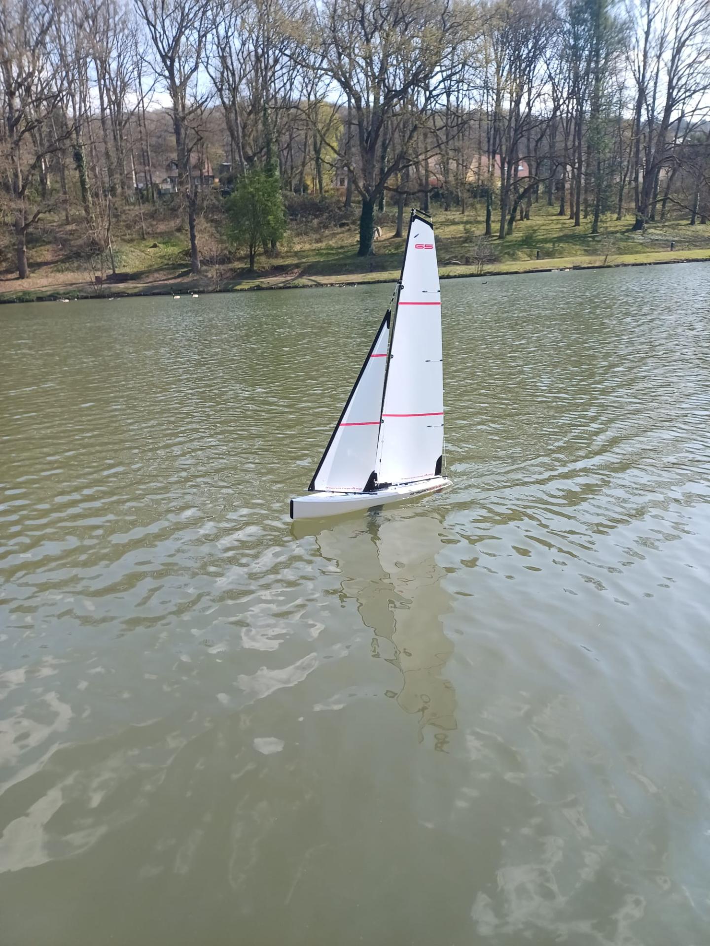 Le lac accueillait principalement des voiliers ce dimanche ! mais aussi quelques électriques! vous pouvez voir ci_dessus la classe footy , petit voilier de 30cm de long et le cata de Christophe. Le temps était propice pour remettre la barque à sa place et les bouées ont été remises à l'eau. Une belle journée, vent du nord, fond de l'air frais pas plus de 15 degrés.